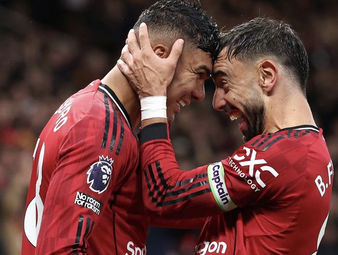 比赛第37分钟,卡塞米罗头球破门,帮助曼联扩大比分。