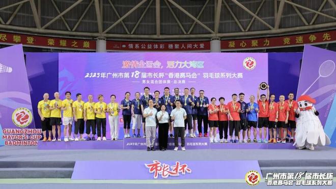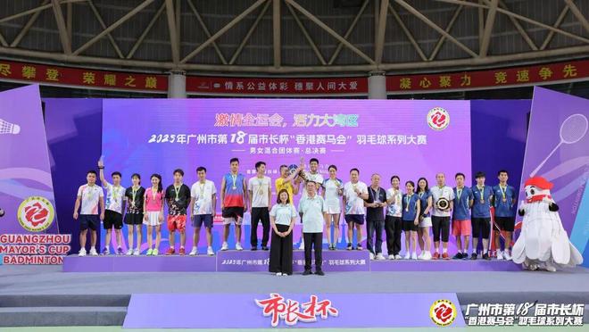 9月20至21日,2025年广州市第十八届“市长杯”香港赛马会羽毛球系列大赛男女混合团体赛总决赛在广州大学城体育中心自行车馆举行。青年组海珠区羽毛球协会队、中青组广州力健运动·聚龙队、中年组上海旗开坊队、老年组WCBF广州俱乐部队从全市418支队伍中突围,问鼎本届“市长杯”男女混合团体赛冠军。赛事主办单位市体育局、市体育总会,承办单位市羽毛球运动管理中心、市羽毛球协会,协办单位各区体育行政部门以及首席合作伙伴香港赛马会、支持单位市体育信息管理中心、威克多体育用品有限公司、农夫山泉股份有限公司代表为获奖队伍颁奖。