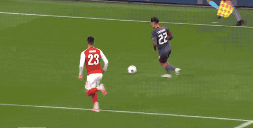 第92分钟,接到厄德高的助攻,萨卡打穿门将小门,锁定胜局。