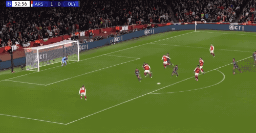 第30分钟,又是来自厄德高的妙传,约克雷斯没有选择传给位置更好的马丁内利,而是决定小角度射门,皮球被后卫封堵。