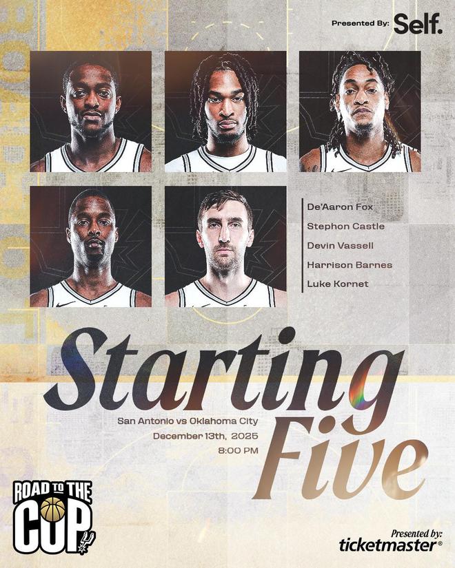 北京时间12月14日,NBA杯半决赛马刺对阵雷霆的比赛即将打响,赛前,马刺公布了本场比赛的首发阵容。
